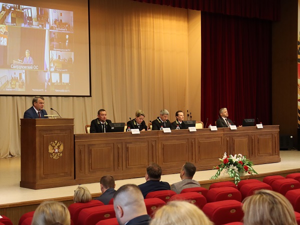 08 августа 2025 года Начальник Управления Судебного департамента в Свердловской области О.Н. Ножников принял участие в совещании по итогам работы районных (городских) судов и мировых судей Свердловской области по рассмотрению судебных дел за I полугодие 2025 года под руководством председателя Свердловского областного суда В.А. Дмитриева. В совещании приняли участие заместители председателя Свердловского областного суда, председатели, заместители председателей, судьи районных, городских судов Свердловской области, мировые судьи судебных районов. Заместители председателя Свердловского областного суда подвели итоги работы по рассмотрению уголовных, гражданских, административных судебных дел. Начальник Управления О.Н. Ножников довел информацию о деятельности Управления, приоритетах в работе, а также планах работы на II полугодие 2025 года. В своем докладе Олег Николаевич отметил о необходимости эффективного использования информационных технологий по направлению судебных уведомлений гражданам посредством Единого портала с использованием государственной электронной почтовой системы по судебным делам. Обратил внимание руководителей судебных органов на приведение архивных фондов в надлежащее состояние, уничтожения дел в судах после пересмотра сроков хранения. Об итогах деятельности судебных участков мировых судей Свердловской области в I полугодии 2025 года доложил директор Департамента по обеспечению деятельности мировых судей Свердловской области А.С. Намятов. После подведения итогов в торжественной обстановке состоялось награждение особо отличившихся судей и государственных гражданских служащих судов благодарственными письмами Свердловского областного суда, дипломами Совета судей Свердловской области и Свердловского регионального отделения Общероссийской общественной организации «Российское объединение судей».